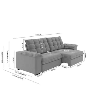 MODELO: Sofá Retrátil e Reclinável Bipartido 2,30m 3 Lugares Palermo Slim