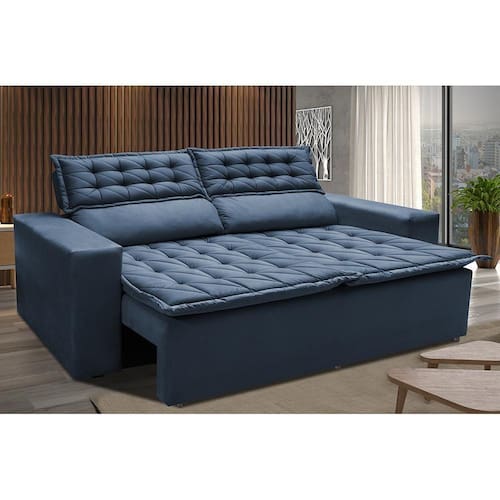 Sofá Retrátil E Reclinável Cama Inbox Slim 1,50m Tecido Suede Velusoft Azul