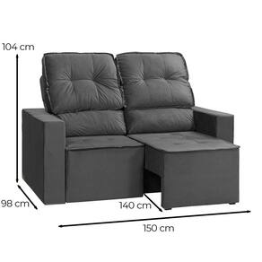 Dimensoes do Produto: Largura: 150 cm Altura: 104 cm. Profundidade: 98 cm. Altura do chao ao assento: 45 cm Largura do Braco: 15 cm Medidas Internas do Assento: 120 x 55 cm Peso: 46 KG