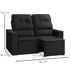 Dimensoes do Produto: Largura: 150 cm Altura: 104 cm. Profundidade: 98 cm. Altura do chao ao assento: 45 cm Largura do Braco: 15 cm Medidas Internas do Assento: 120 x 55 cm Peso: 46 KG