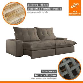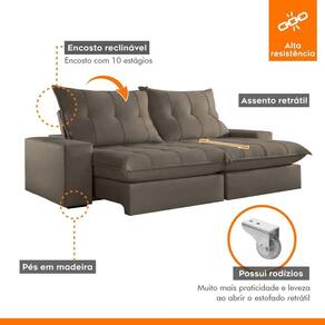Sofá Retrátil e Reclinável com Catraca Blindada 210cm Porto Jolie/Cinza