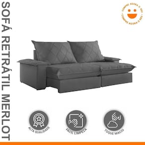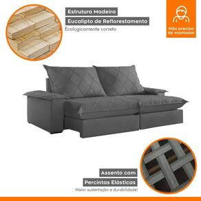 Sofá Retrátil e Reclinável com Catraca Blindada 280cm Merlot Veludo Jolie/Grafite - Cinza