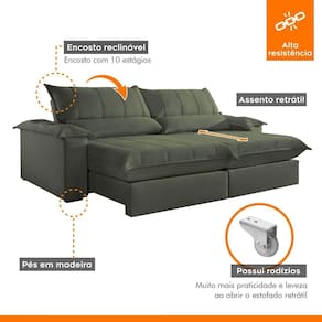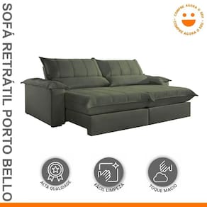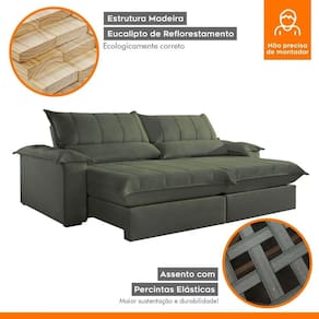 Sofá Retrátil e Reclinável com Catraca Blindada 280cm Porto Bello Sanzio/Verde