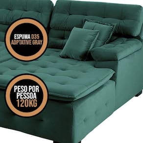 Encosto: Reclinável com 5 posições e almofadas fixas compostas por 100% de fibra siliconada.Assento: Possui assento retrátil com Pillow Top de espuma D35 Adaptative Gray e sistema de molas ensacadas individualmente.Material da estrutura: Feito de madeira maciça de eucalipto, 100% de reflorestamento, sendo um produto ecologicamente correto.Enchimento do Assento: Espuma D-35 Adaptative Gray.Fixação da Estrutura: Utiliza grampos de aço galvanizados.Revestimento do Tecido: Veludo Soft.Marca: Sofisticato.