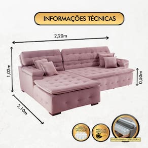 Sofá Orlando Retrátil, Reclinável e Chaise 2.20x2,10m – Sofisticato