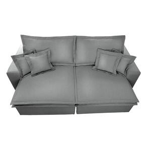 Características: -Encosto Reclinável com 5 posições, almofadas soltas compostas de 80% fibra siliconada e 20% flocos de espuma e percintas elasticas para maior conforto. -Assentos: Retráteis com pillow top em espuma D33 envolvidas com fibra SILICONADA compactada, Molas espiral, percintas Pneumáticas com feltro para proteger do atrito com as molas. -Braços: Com 25cm de largura e com espuma D23. -Fixação: Grampos galvanizados -Estrutura de Madeira maciça 100% eucalipto de reflorestamento, produto ecologicamente correto -Tecido em linho com manta siliconada de alto padrão.