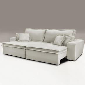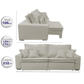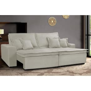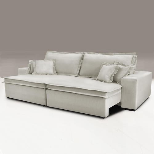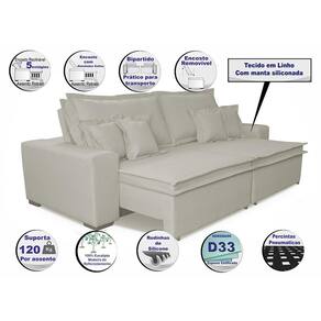 Sofa Retrátil e Reclinável com Molas Cama inBox Premium 2,32m tecido em linho Bege Claro