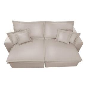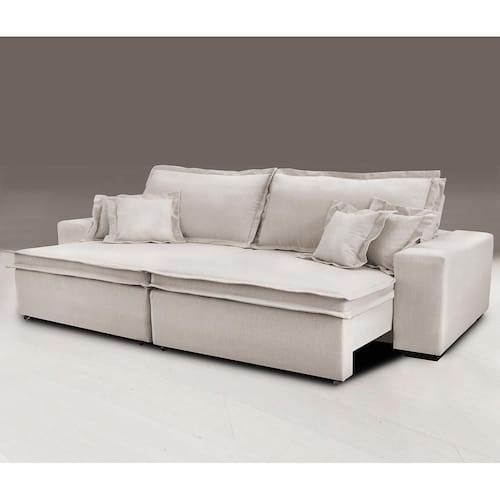 Sofa Retrátil E Reclinável Com Molas Cama Inbox Premium 2,32m Tecido Em Linho Bege Claro