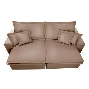 Sofa Retrátil E Reclinável Com Molas Cama Inbox Premium 2,72m Tecido Em Linho Bege Escuro - Blush