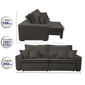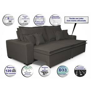 Sofa Retrátil e Reclinável com Molas Cama inBox Premium 2,92m tecido em linho Marrom