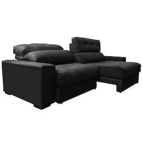 Sofá Retrátil E Reclinável Com Molas Ensacadas Cama Inbox Master 2,12m Tecido Suede Preto