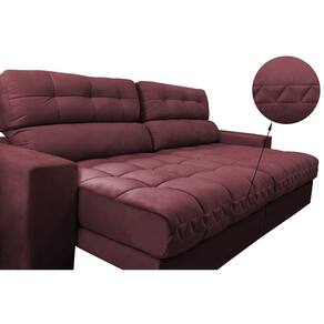 Características: -Encosto Reclinável com 5 posições, almofadas fixas compostas de 80% fibra siliconada e 20% flocos de espuma e percintas elásticas para maior conforto. -Assentos: Retráteis com espuma D33 envolvidas em ultra camada de fibra SILICONADA compactada, Molas ensacadas grandes, Molas Bonnel, percintas Pneumáticas com feltro para proteger do atrito com as molas. -Braços: Com 25cm de largura e com espuma D33. -Fixação: Grampos galvanizados -Estrutura de Madeira maciça 100% eucalipto de reflorestamento, produto ecologicamente correto. -Tecido suede com toque aveludado -Pés em PVC