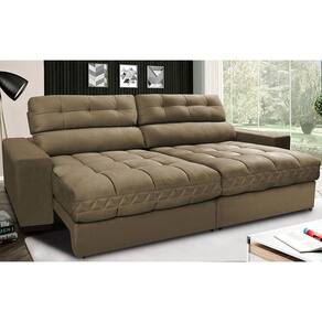 Características: -Encosto Reclinável com 5 posições, almofadas fixas compostas de 80% fibra siliconada e 20% flocos de espuma e percintas elásticas para maior conforto. -Assentos: Retráteis com espuma D33 envolvidas em ultra camada de fibra SILICONADA compactada, Molas ensacadas grandes, Molas Bonnel, percintas Pneumáticas com feltro para proteger do atrito com as molas. -Braços: Com 25cm de largura e com espuma D33. -Fixação: Grampos galvanizados -Estrutura de Madeira maciça 100% eucalipto de reflorestamento, produto ecologicamente correto. -Tecido suede com toque aveludado -Pés em PVC