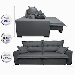 Sofá Retrátil e Reclinável com Molas Ensacadas Cama inBox Prime 2,72m Tecido Linho Cinza Escuro