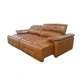Sofá Retrátil E Reclinável De Couro Queen 2,60 M Conhaque Com Brilho Mempra Design