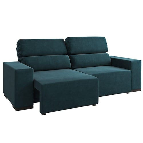 Características: Marca: Viero Modelo:Eduarda Tipo de estofado:3 ou + lugares Matéria-prima: Madeira de Eucalipto Revestimento: Pintura UV Acabamento: Semi-brilho Tecido: Veludo Percintas: Elásticas Assento: Espuma D23/convencional e percintas Encosto: 100 fibra siliconada Braços: Espuma D16 Reclinagem:5 estágios Capacidade de carga:90 kg por assento Pés: Plásticos Altura dos pés: 4 cm Altura do assento ao chão: 38,5 cm