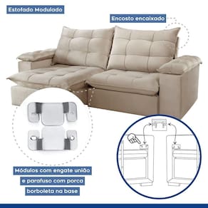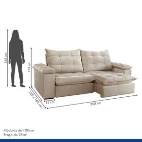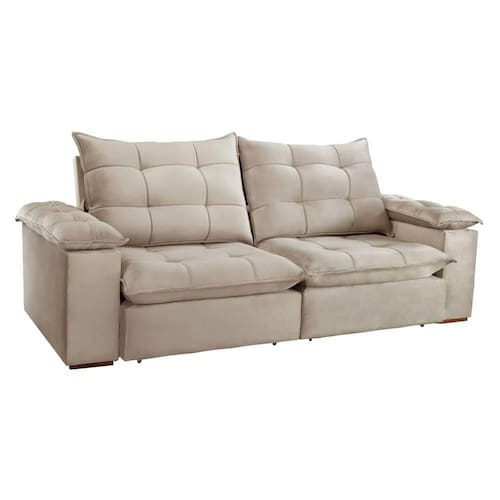 Sofá Retrátil e Reclinável Espanha Veludo Bege Claro 2,50M