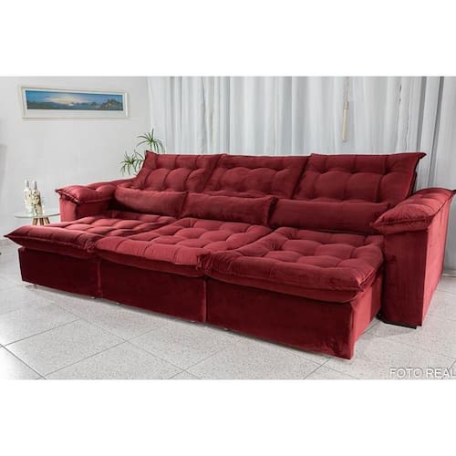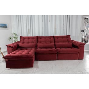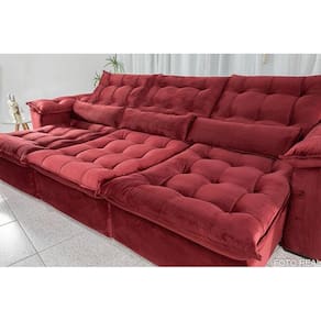 Sofá Retrátil e Reclinável Ipanema 2,10m em Tecido Veludão C/ 03 Módulos - Montagem Inclusa - Bordô