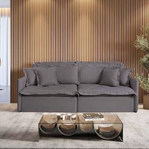 Material: Produto feito com madeira de reflorestamento e revestido em linho 100% poliéster. Possui no assento retrátil Pillow de 16 Cm de espuma contínua D28 supersoft, garantindo o conforto e durabilidade do produto. O encosto possui almofadas de fibra de silicone. Possui ainda pés de madeira e costura pespontada.