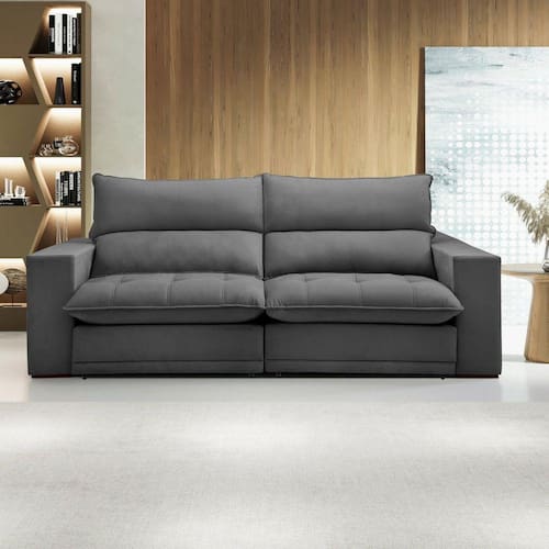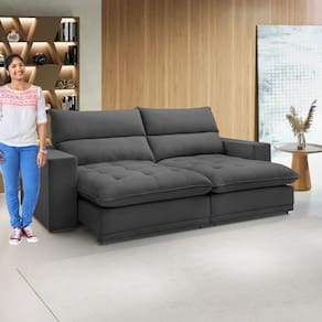 O sofá retrátil e reclinável Martinho de 230cm oferece o máximo conforto e versatilidade. Com design elegante e acabamento impecável, suas características diferenciadas incluem assentos retráteis para ajuste personalizado, encostos reclináveis para relaxamento total e materiais de alta qualidade que garantem durabilidade. Ideal para quem busca sofisticação e praticidade em um único produto, o Martinho se destaca pela sua funcionalidade e estilo, tornando-se o complemento perfeito para qualquer ambiente. Acompanha Almofadas extras: Não Almofada do assento: Fixa Almofada do encosto: Removível Altura do assento até o chão: 53 Altura do Encosto: 59 Altura dos Pés: 2.5 Ambiente Principal: Sala de Estar Complexidade da Montagem: Baixa: pode ser montado por uma pessoa sozinha Cor: Cinza Cor do Produto: Cinza Densidade do Assento: D-28 Densidade do Encosto: D-18 Enchimento do Assento: Espuma Enchimento do Encosto: Fibra Siliconada Estilo de Braço: Braços Quadrados Firmeza do Assento: Firme Itens Inclusos: 1 Sofá Linha ou Coleção: Martinho Material dos Pés: Madeira Necessita Montagem: Sim Origem do Produto: Nacional Peso: 84.2 Pet Friendly: Não Possui Baú: Não Possui Percintas Elásticas: Sim Possui Pés: 12 Possui Rodízio: Sim Profundidade Quando Estendido: 180 Quantidade de Itens: 1 Recomendações de Uso, Manutenção e Limpeza: Para limpar, utilize pano seco ou papel absorvente. Não armazenar em local úmido. Não usar produtos químicos como detergente, cloro, alvejantes entre outros. Evitar exposição a luz solar direta por longos períodos. Resistente à Chuva: Não Revestimento do Braço: Veludo Rodízio com Trava: Não Sistema de Montagem: Encaixe. Suporta Até (kg): 120 Tecido Predominante: Veludo Tipo de Encosto: Regulável Tipo de Madeira Maciça da Estrutura: Eucalipto Tipo de Mola: Molas Ensacadas (Molas ensacadas) Marca: Celflex