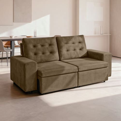 Madeira de eucalipto reflorestada, espuma D24, molas espirais, fibra siliconada, veludo.Vendido e entregue por MadeiraMadeira