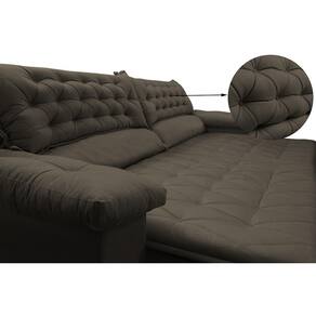 Características: -Revestimento: Suede Velusoft 100% Poliéster -Encosto Reclinável com 5 posições, almofadas fixas compostas de 80% fibra siliconada e 20% flocos de espuma e percintas elásticas que proporcionam maior conforto. -Assentos: Retráteis com espumas D33, com 208 Molas Ensacadas, camada de espumas cobertas por mais uma macia camada de fibra siliconada em seu Pilow TOP, percintas Pneumáticas com feltro para proteger do atrito com as molas. (Extremament resistente e confortável). -Braços: Com 25cm de largura e com espuma D33. -Fixação: Grampos galvanizados -Estrutura de Madeira maciça 100% eucalipto de reflorestamento, produto ecologicamente correto -Pés em PVC