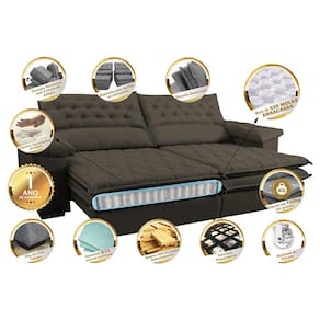 Sofá Retrátil e Reclinável Molas Ensacadas Cama inBox Botonê 2,52m Espuma Viscoelástico Suede Café - Marrom