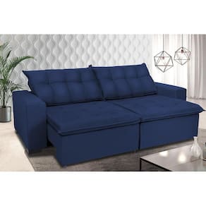 Informações importantes: * Os objetos que ambientam as fotos não acompanham o produto. * Nossas cores podem sofrer alterações dependendo do seu monitor. * Verifique as dimensões do produto e certifique-se que o percurso que ele fará até o local de uso permite sua passagem. * Nos responsabilizamos pela entrega dos produtos adquiridos até a porta de entrada ou portaria do endereço indicado. Quaisquer despesas ou dano no transporte até o local de uso ficam a cargo do cliente. É sofá de canto: Não | É sofá-cama: Não | Encosto Reclinavel: Sim | Assento Retratil: Sim | Fabricante: Cama inBox | Quantidade de Lugares: 5 | Altura: 100 | Largura: 232 | Desenho do tecido: Liso | Profundidade: 120 | Acessórios incluídos: Não | Cor principal: Azul Marinho | Cor: Azul Marinho | Produto: Sofá | Comodo indicado: Salas | Estilo: Moderno | Complexidade de Montagem: Fácil de montar | Tempo Estimado de Montagem: 20 Minutos | Material do Assento: Madeira Reflorestada, Molas, Espuma, Tecido Liso | Custo da Manutenção: Baixo | Conservação e Manutenção do Produto: Para maior durabilidade, recomendamos que a limpeza dos estofados com revestimento em tecido, seja feito com aspirador de pó em baixa rotação ou escova com cerdas macias para a eliminação de poeira e pano úmido em água. Não utilizar agentes químicos! | Condição do item: Novo | É kit: Não | Peso do Produto: 80 | Modelo Via: Retrátil/Reclinável | Estado de Origem: PR | Material para Filtro: Tecido | Quantidade de Lugares Via: Acima de 4 lugares | Tipo de Sofá: Retrátil e Reclinável