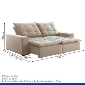 Sofá Retrátil e Reclinável Paris Veludo Bege Claro 230cm