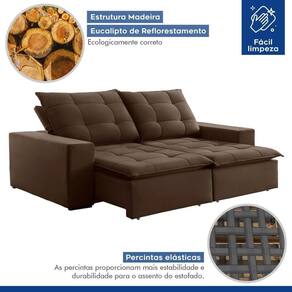 Sofá Retrátil e Reclinável Paris Veludo Marrom 2,50M