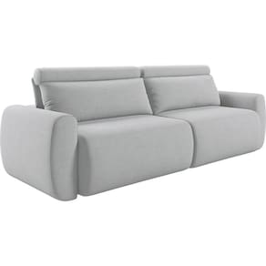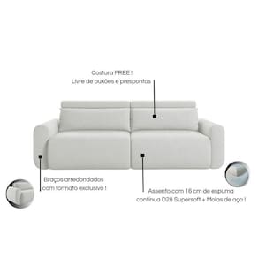 Material: O sofá possui estrutura em madeira de reflorestamento, assento retrátil com mecanismo metalico, espuma contínua D28 Supersoft de 16cm sustentado por 12 molas de aço e percinta sintética, encosto reclinável com catraca blindada em 7 posições, almofadas soltas com enchimento em fibra de silicone e rolinho em espuma D20 costurado ao assento e encosto. O revestimento é em linho 100% poliéster, os módulos retráteis contam com rodinhas de silicone, os pés são de madeira e o acabamento é em costura free, unindo conforto, resistência e elegância.