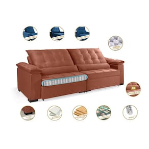 Material da estrutura: Madeira Maciça de Eucalipto 100% de reflorestamento tratado, produto ecologicamente correto. Enchimento do Assento: Espuma D-26 a D33, Manta Siliconada, Molas ensacadas. Enchimento do Encosto: Fibra de Poliéster Siliconada. Braços almofadados. Fixação da Estrutura: Grampos galvanizados ánti-ferrugem. Revestimento / Tecido: Veludo Inca – Mas temos outros tecidos. Diferencial: Assentos retráteis individuais. Maior liberdade e conforto. Pés em Madeira. Encaixa juntas Metálicas. Capacidade em KG por Lugar: Aproximadamente 160kg.*distribuídos igualmente sobre a área do assento.* A tonalidade do produto pode variar entre a imagem de exibição e o item físico. Medidas: