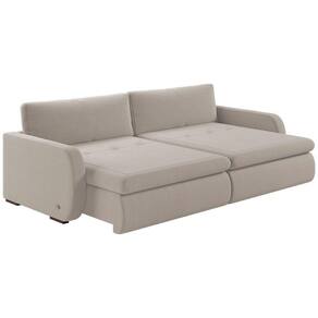 Material: O sofá possui estrutura em madeira de reflorestamento, assento retrátil com mecanismo metalico, pillow nos assentos com 16cm de espuma contínua D28 Supersoft sustentado por 4 molas de aço, encosto reclinável em 3 posições, almofadas soltas com enchimento em fibra de silicone. O revestimento é em linho 100% poliéster, os módulos retráteis contam com rodinhas de silicone, os pés são de madeira, unindo conforto, resistência e elegância.