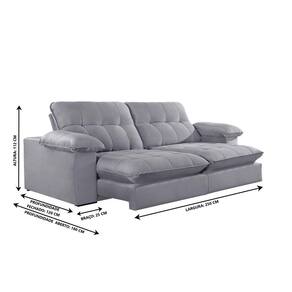 Dimensoes: Altura: 112 cm Largura: 250 cm Profundidade Fechado: 120 cm Profundidade Aberto: 180 cm (com encosto reclinado) Peso: 124 kg