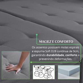 Este sofá retrátil estofado em linho oferece o máximo em conforto e praticidade, com braços almofadados que adicionam um toque extra de aconchego. Seu encosto com reclinação de 90 graus permite ajustar a posição para relaxamento ideal. O design moderno e funcional faz dele a escolha perfeita para quem busca um mobiliário versátil e elegante. Ideal para otimizar o espaço sem sacrificar o estilo. Produto Montado: Sim Acompanha Almofadas extras: Não Almofada do assento: Fixa Almofada do encosto: Removível Altura do assento até o chão: 45.0000 Altura do Encosto: 105 cm Ambiente Principal: Sala de Estar codigo_ean: 7909903856703 Complexidade da Montagem: Baixa: pode ser montado por uma pessoa sozinha Consistência do Assento: Macio Cor: Cinza Cor do Produto: Cinza Densidade do Assento: D-28 Enchimento do Assento: Espuma Estilo de Braço: Braços Quadrados Firmeza do Assento: Macio Itens Inclusos: 1 sofá retrátil. Linha ou Coleção: Muriaé Marca: Lufer Estofados Material dos Pés: Madeira Maciça Necessita Montagem: Sim Peso: 85 kg Pet Friendly: Não Possui Percintas Elásticas: Sim Possui Pés: 08 Possui Rodízio: Sim Profundidade Quando Estendido: 180 cm Profundidade quando extendido: 180.0000 Recomendações de Uso, Manutenção e Limpeza: Um pano seco e um pano levemente umedecido, evitar alvejantes e produtos de limpeza. Rodízio com Trava: Não Sistema de Montagem: Encaixe. Suporta Até (kg): 120 kg Tecido Predominante: Linho Tipo de Encosto: Regulável Tipo de Mola: Molas Nozag