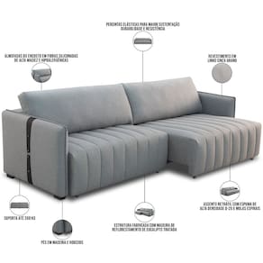 Projetado para combinar conforto e estilo, esse sofá retrátil oferece uma experiência inigualável. O destaque fica por conta da tapeçaria de alta densidade, com espuma D-26 e molas espirais, as quais proporcionam um suporte excepcional e durabilidade incomparável. Além disso, o revestimento com tecido premium exala uma elegância atemporal, enquanto o design moderno se adapta harmoniosamente a qualquer decoração de sala de estar. Para quem busca modernidade sem abrir mão da sofisticação, esse sofá 3 lugares é a escolha ideal para elevar o estilo da sua casa e, assim, tornar memorável os momentos com família e amigos, principalmente durante uma série e filme, já que o assento retrátil permite mais espaço de acomodação. Não espere mais e garanta já o seu!