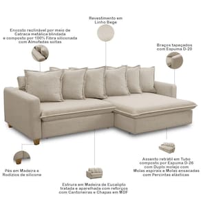 Color: Bege | ColorFamily: Bege | ColorSimple: Bege | ColorSupplier: Bege | Cor: Bege | Estilo: Moderno | Material: Madeira de Eucalipto, Cantoneiras, Chapas em MDF | MaterialFamily: Madeira de Eucalipto | Model: Lake | OriginCountry: Brasil | OriginState: PR | ProductContents: 01 Sofá | ProductInstructions: Produto para uso em ambiente interno, nao devendo ficar exposto ao sol, calor e umidade excessivos. | ProductLength: 124 cm | Profundidade: 124 cm | SupplierSimpleName: Sofá Retrátil Para Sala Living 4 Lugares 290cm Lake F04 Linho Bege - Lyam Decor