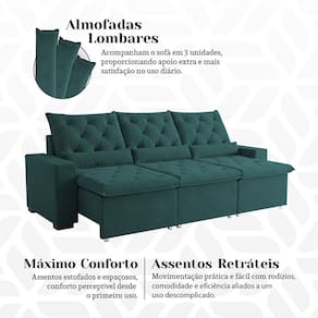 PRINCIPAIS BENEFÍCIOS Sistema retrátil e reclinável para máximo relaxamento Revestimento macio e aconchegante Estrutura reforçada para maior durabilidade Ideal para salas modernas e confortáveis Perfeito para descanso e momentos de lazer