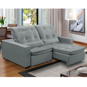 Sofa Retratil Reclinavel 2 Lugares 1,90m Atlantis Veludo Cinza Claro LansofBR