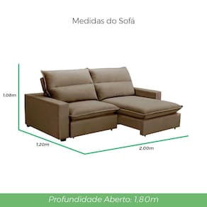 Altura: 1,08 m | Largura: 2,00 m | Profundidade Fechado: 1,20 m | Aberto: 1,80 m
