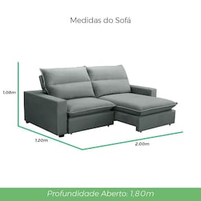Altura: 1,08 m | Largura: 2,00 m | Profundidade Fechado: 1,20 m | Aberto: 1,80 m