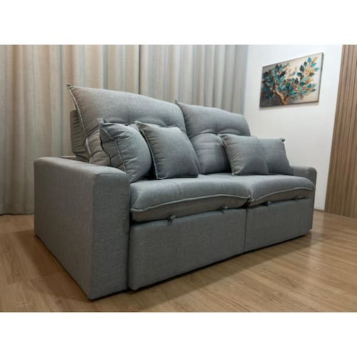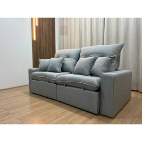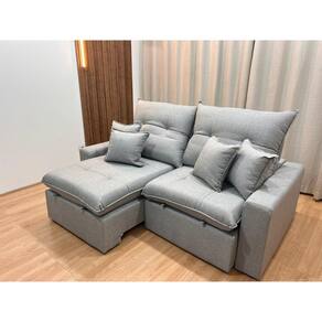 MEDIDAS DO SOFÁ: Comprimento: 2.30 mProfundidade Fechado: 120 cmProfundidade Aberto: 180 cm Altura: 115 cm Assento: Retrátil com percintas elasticas, molas espiral, espuma D28, pillow top 18cm de altura, com molas ensacadas e matelassê o que proporcionam uma acomodação extremamente confortável. Encosto: Reclinavel, catraca blindada 7 estágios, almofadas com fibras de poliester siliconizada. Incluí 4 almofadas decorativas. Estrutura: Sua estrutura é com madeira de eucalipto, 100% reflorestada e seca em estufa, e os pés são produzidos em madeira e braços com Espuma 28. Revestimento: O revestimento é em tecido Linho, deixando a superfície do sofá muito mais macia.