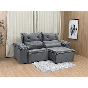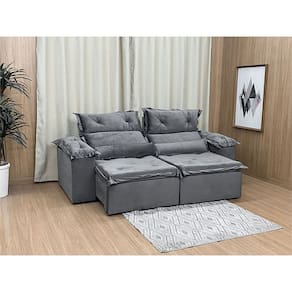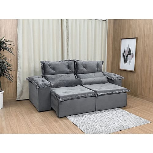 Sofá Retrátil Reclinável 2,40 m Cinza 502 Luna Nosso Sofá Retrátil Luna é um produto moderno, com design elegante que combina com qualquer ambiente e deixa sua sala ainda mais linda e aconchegante. MEDIDAS DO SOFÁ: Altura: 1.13 mLargura: 2.40 mProfundidade fechado: 1.60 mProfundidade aberto: 1.80 m Assento: Retrátil com Espuma 28 envolvida com manta siliconada com molas bonnel Pillow 14cm. Encosto: Reclinável solto em fibra 100% siliconada com catraca 5 estágios.