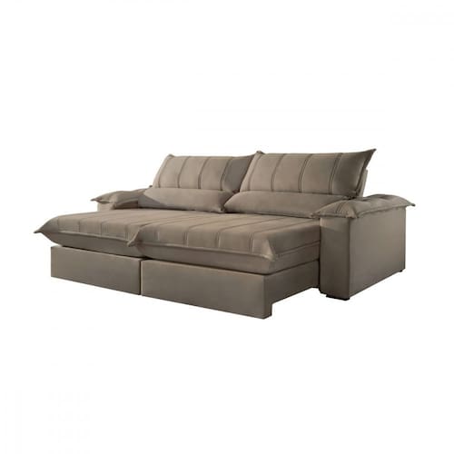 Sofá Retrátil Reclinável 2.40m Porto Bello Veludo Jolie Capuccino Montano - Marrom