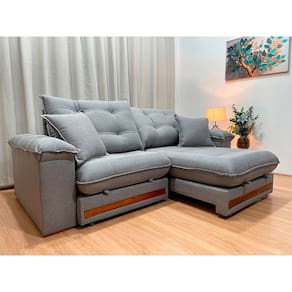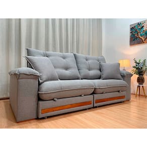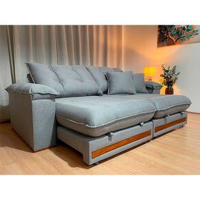 MEDIDAS DO SOFÁ: Comprimento: 2.50 mProfundidade Fechado: 120 cmProfundidade Aberto: 170 cm Altura: 105 cm Assento: Retrátil com percintas elasticas, molas espiral, espuma D28, pillow top 25cm de altura, com molas ensacadas e matelassê o que proporcionam uma acomodação extremamente confortável. Encosto: Reclinavel, catraca blindada 90, almofadas com fibras de poliester siliconizada. Estrutura: Sua estrutura é com madeira de eucalipto, 100% reflorestada e seca em estufa, e os pés são produzidos em madeira e braços com Espuma 26. Revestimento: O revestimento é em tecido Linho, deixando a superfície do sofá muito mais macia.