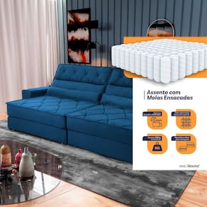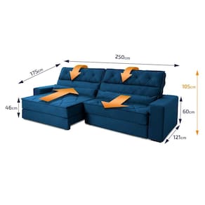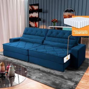 Sofá Retrátil Reclinável 2,50m Albany Suede Velut Azul Marinho Molas Ensacadas - King House