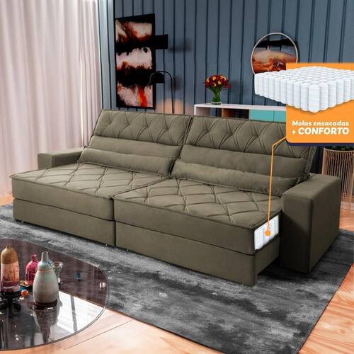 Ele possui encosto reclinável em cinco posições, proporcionando-lhe mais conforto na hora do descanso. Não para por aí: seu assento retrátil conta com espuma D33 e molas ensacadas, transformando seu sofá em uma verdadeira cama para assistir seu filme preferido.