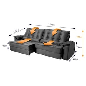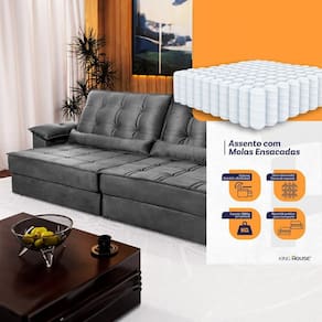 Sofá Retrátil Reclinável 2,50m Ascari Suede Velut Cinza molas Ensacadas - King House