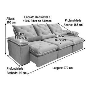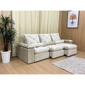Sofá Retrátil Reclinável 2,70 m Bege 501 Zuqui Plus Nosso Sofá Retrátil Reclinável Zuqui Plus é um produto moderno, com design elegante que combina com qualquer ambiente e deixa sua sala ainda mais linda e aconchegante. MEDIDAS DO SOFÁ: Altura: 1.00 mLargura: 2.70 mProfundidade fechado: 0.90 mProfundidade aberto: 1.65 m Assento: O assento com Pillow top 20cm é retrátil com espuma 28, contem também percinta elástica e molas bonel, que proporcionam uma acomodação extremamente confortável. Almofadas com fibras de poliéster siliconada. Encosto: O Encosto reclinável com espuma 100% fibra de silicone, trazendo mais conforto para você na hora do seu descanso. Braços: Os Braços são com espuma fibra de silicone Estrutura: Sua estrutura é com madeira de eucalipto, 100% reflorestada e seca em estufa, e os pés são produzidos em madeira e rodízio de silicone Revestimento: O revestimento é em tecido veludão Premium, deixando a superfície do sofá muito mais macia. * As imagens dos produtos são meramente ilustrativas