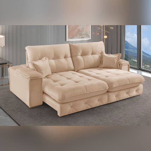 O Sofá Retrátil e Reclinável Istambul combina design e modernidade em um único sofá. Ideal para uma sala de estar ou home cinema , o Istambul proporciona conforto para toda a família. Em diversas medidas ele atende necessidades em que é preciso um sofá mais amplo ou para locais em que é preciso um sofá na medida certa. Além disso, ele é versátil pois se apresenta em uma variedade de cores que se adaptam a diferentes estilos de decoração. O destaque do sofá Istambul esta nas possibilidades que ele apresenta, são 4 opções para atender as mais diversas necessidades: Padrão, Porta Copos, Porta Copos e USB e USB. Garanta já seu sofá Istambul e tenha estilo, modernidade e conforto em sua casa! Acompanha Almofadas extras: 02 Almofada do assento: Fixa Almofada do encosto: Fixa Altura do assento até o chão: 50 cm Altura do Encosto: 76 cm Altura dos Pés: 2 cm Ambiente Principal: Sala de Estar Complexidade da Montagem: Média: pode ser montado por mais de uma pessoa e/ou necessite de maior conhecimento para montagem Cor: Bege Cor do Produto: Bege Densidade do Assento: D-26 Densidade do Encosto: Camadas de Densidades Diferentes Enchimento do Assento: Hyper Soft Enchimento do Encosto: Fibra Siliconada Estilo de Braço: Braços Pillow Top Firmeza do Assento: Médio Itens Inclusos: 01 Sofá e Manual de Montagem Manual de Especificação Técnica: https://cdn2.madeiramadeira.com.br/atributo/vicam-estofados/2027335-2041-1717617793838.pdf Manual de Montagem e Instalação: https://cdn2.madeiramadeira.com.br/atributo/vicam-estofados/2027334-2041-17176177891214.pdf Material dos Pés: Pinus Montagem Flex: Não Necessita Montagem: Sim Nível de Conforto: Macio Origem do Produto: Nacional Peso: 88 kg Pet Friendly: Não Porta Copos: Não Possui Baú: Não Possui Entrada USB: Não Possui Percintas Elásticas: Sim Possui Pés: 08 Possui Rodízio: Sim Profundidade Quando Estendido: 190 cm Recomendações de Uso, Manutenção e Limpeza: Limpar com pano úmido sem uso de produtos químicos Revestimento do Braço: Veludo Rodízio com Trava: Sim Sistema de Montagem: Encaixe Suporta Até (kg): 160 kg Tecido Predominante: Veludo Tipo de Encosto: Regulável Tipo de Mola: Molas Bonnel